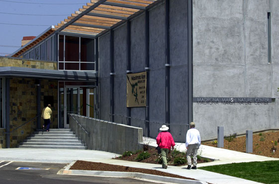 The Nature Center opened on Saturday, April 28, 2001, and a community’s dream came to fruition – thirty years after grassroots efforts first started to create the Preserve. Project planning for what is now known as Madrona Marsh began in 1984, and the groundbreaking ceremony was held in November 1999. The architecture firm Bryant Palmer Soto designed the Nature Center.